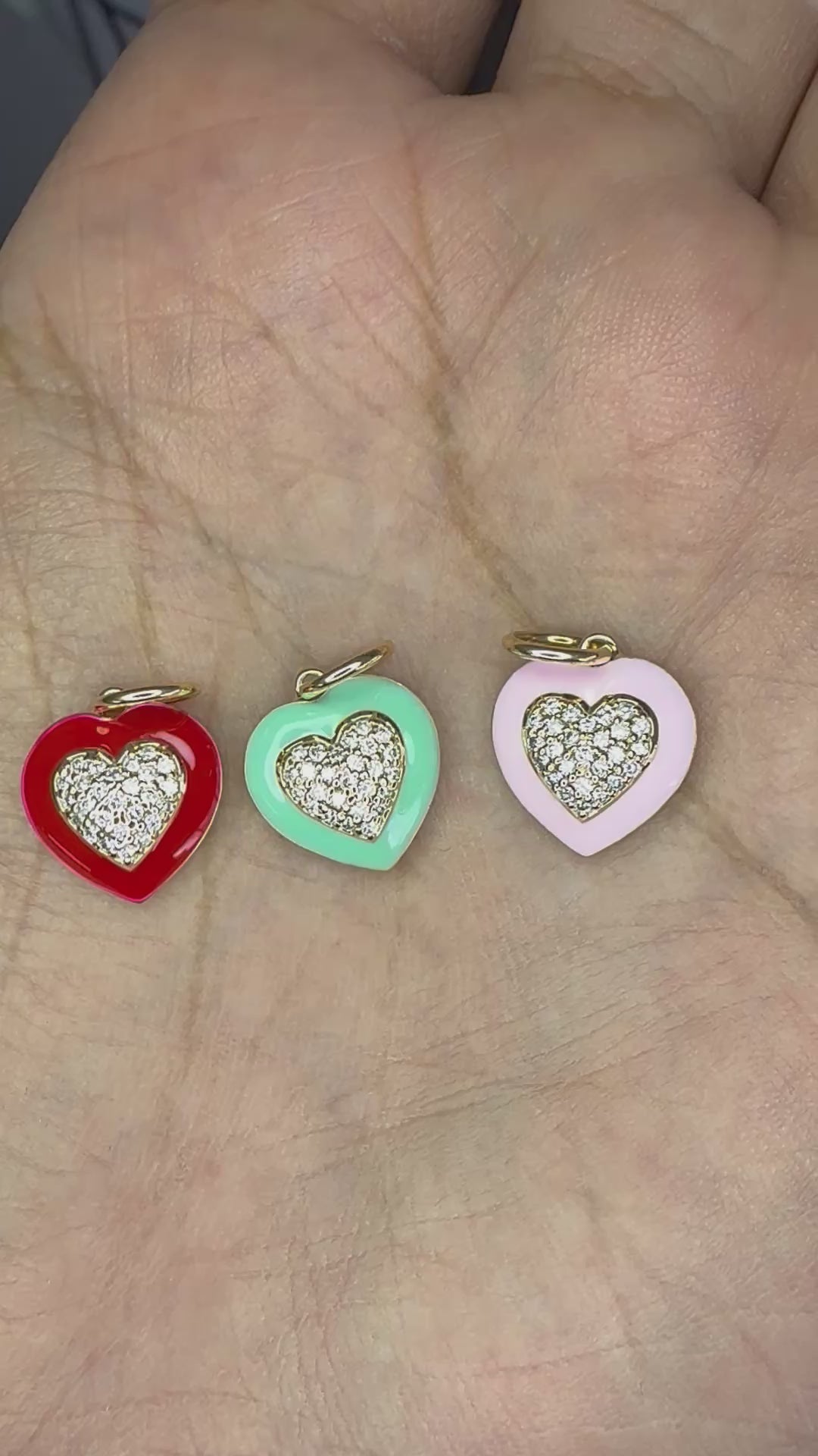 Heart Charm with Diamonds and Enamel